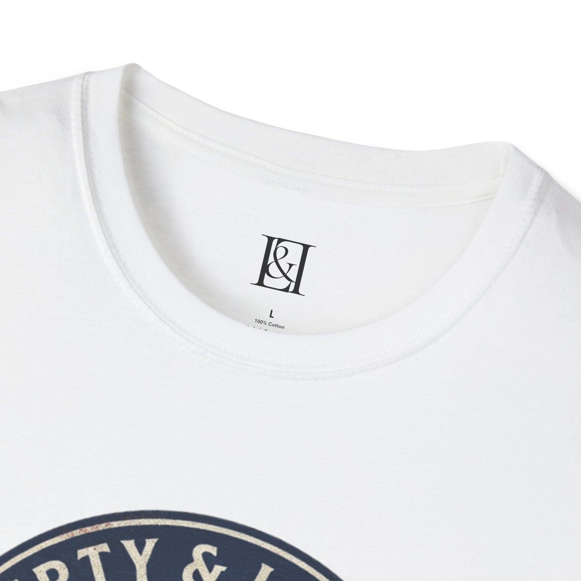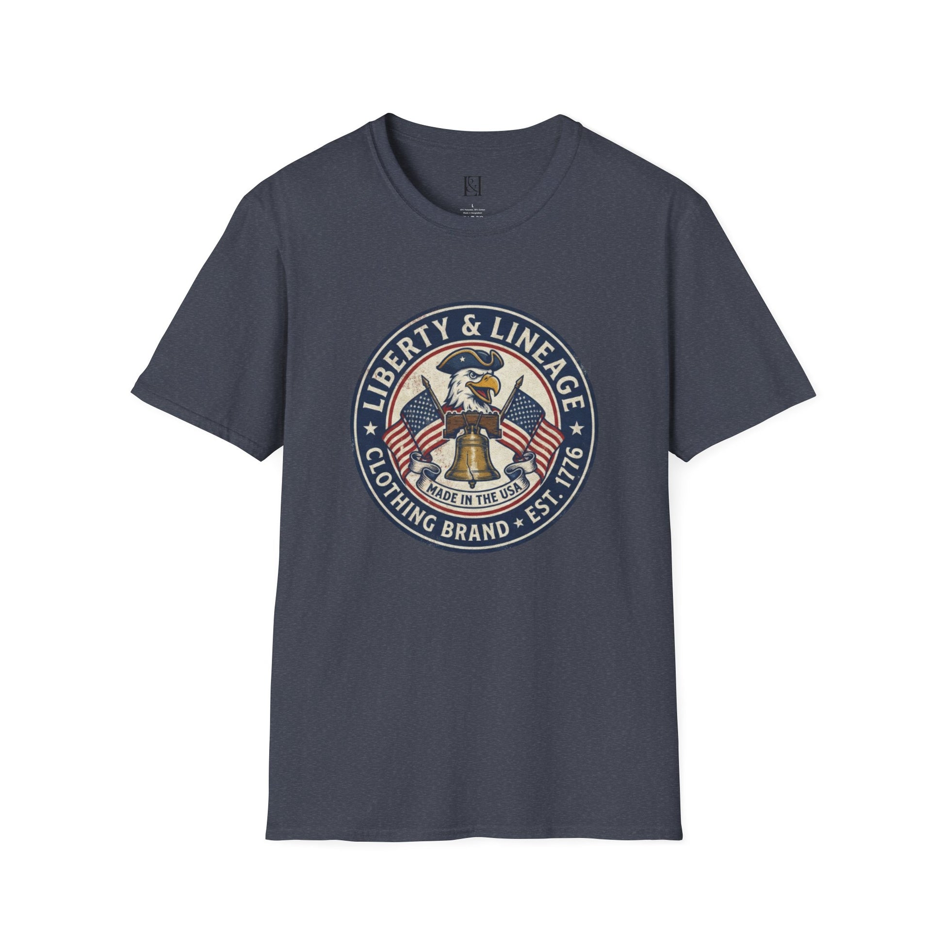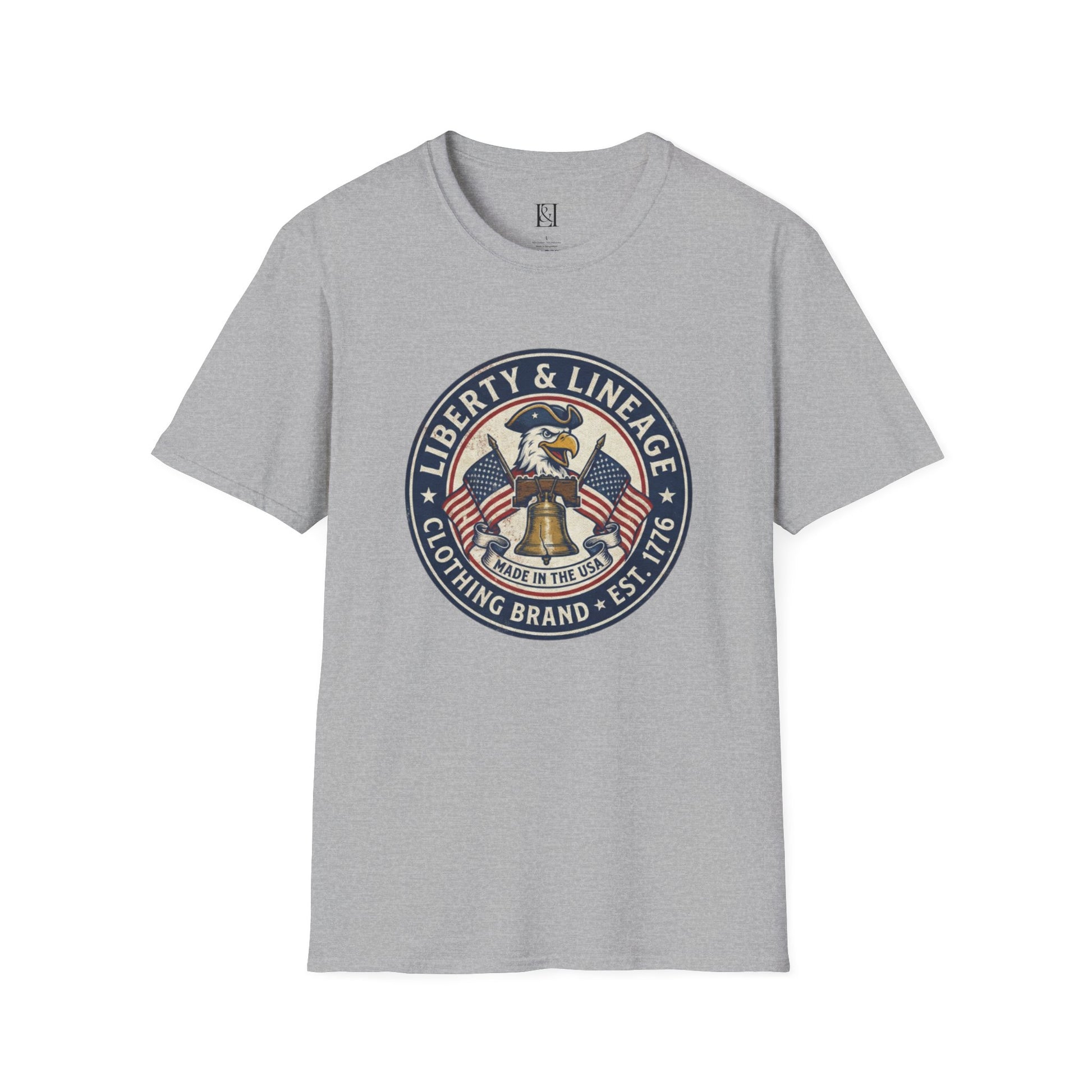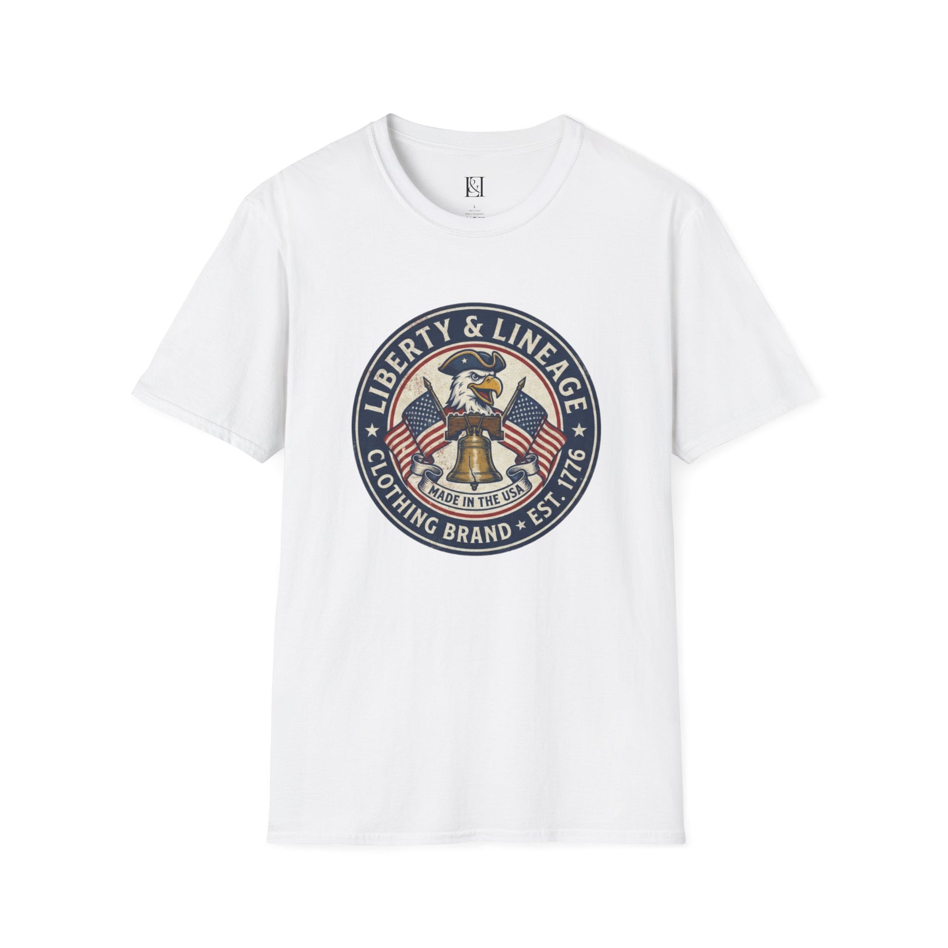 L&L T-Shirt - Vintage Colonial Eagle Patch + Flags + Liberty Bell